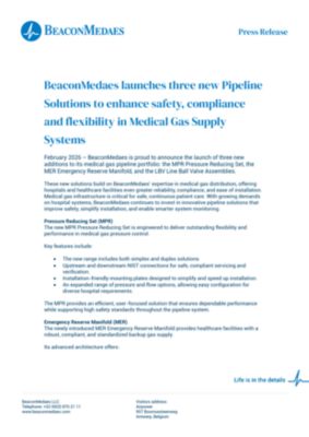 February 2026 – BeaconMedaes is proud to announce the launch of three new additions to its medical gas pipeline portfolio: the MPR Pressure Reducing Set, the MER Emergency Reserve Manifold, and the LBV Line Ball Valve Assemblies.